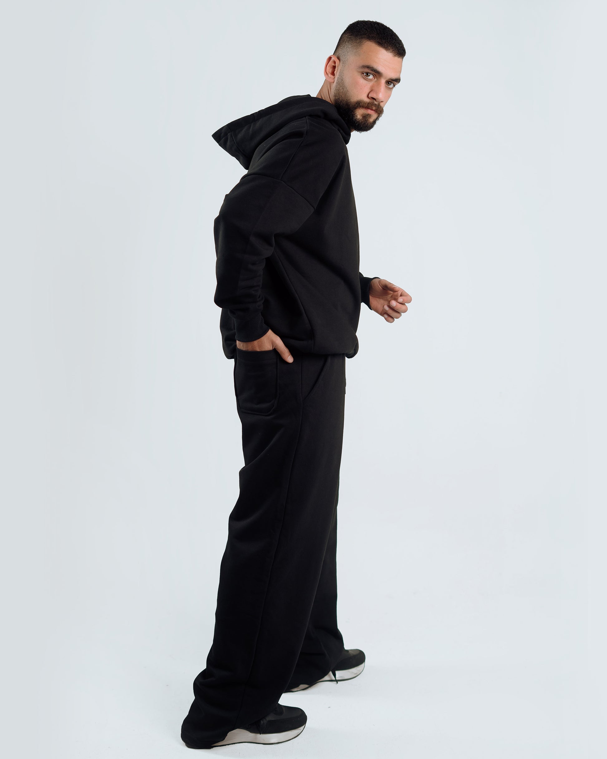Men’s Oversized Hoodie & Wide-Leg Pants Set – Black